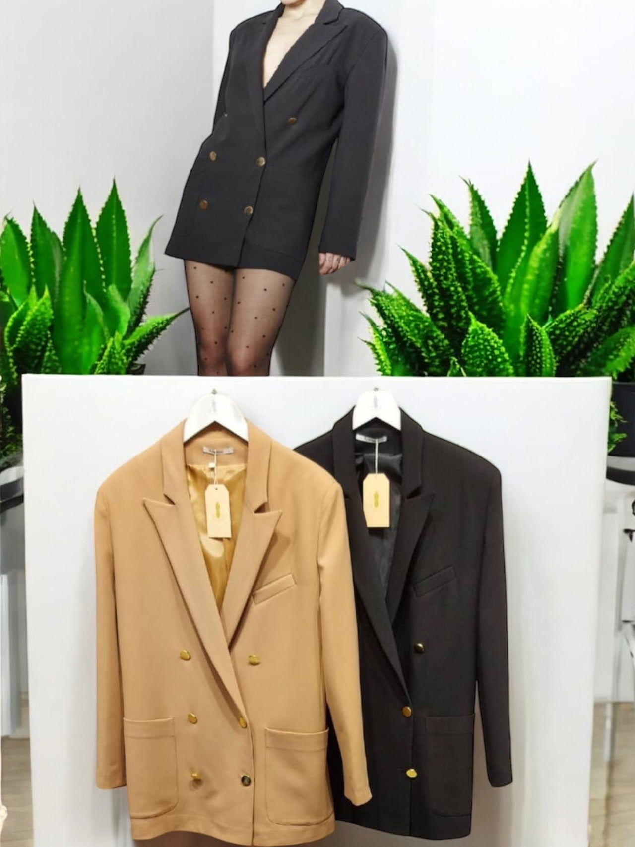 Oversize Gold Düğme Kruvaze Ceket