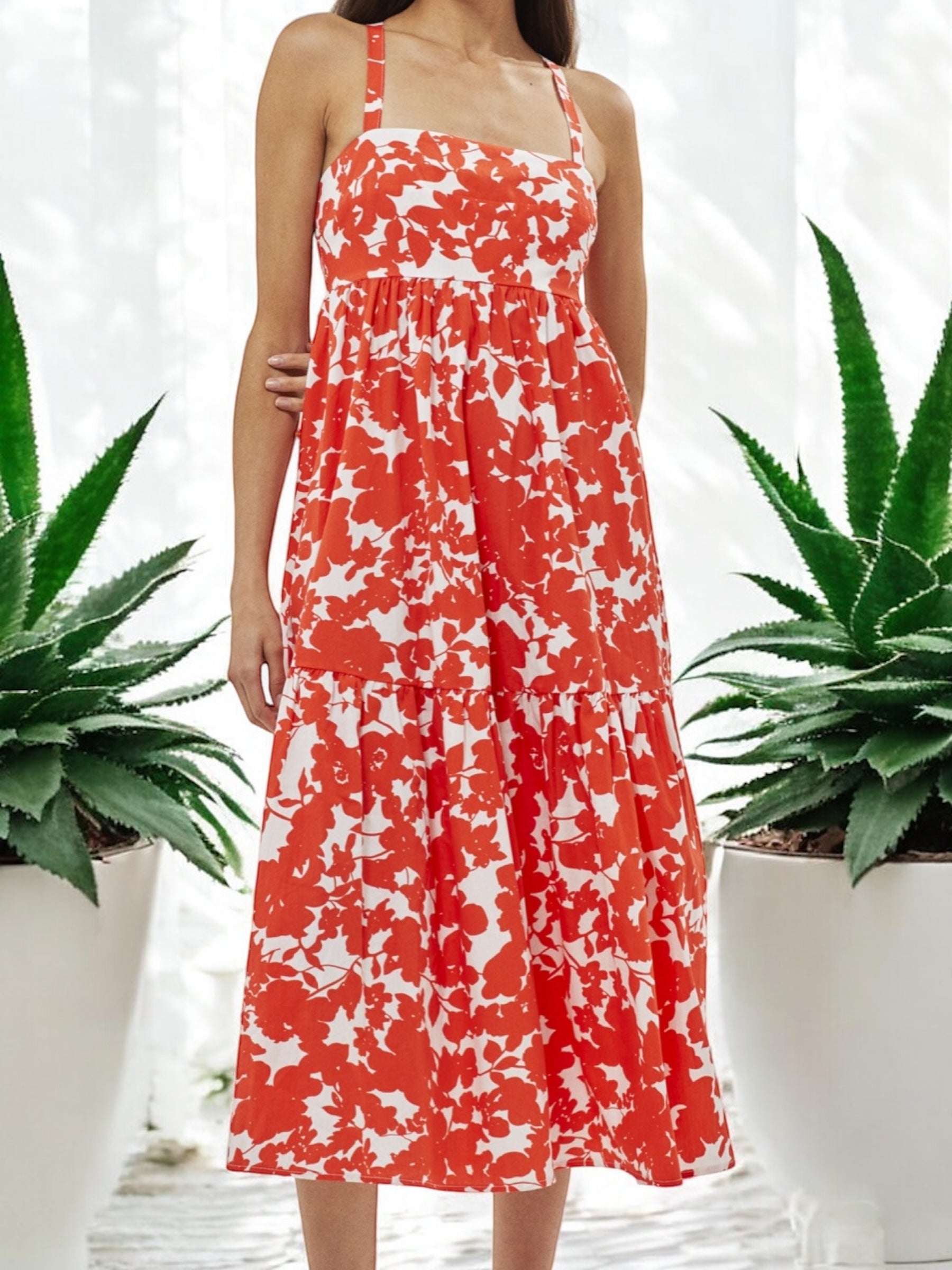 Pamuklu Midi Boy Kalın Askılı Elbise