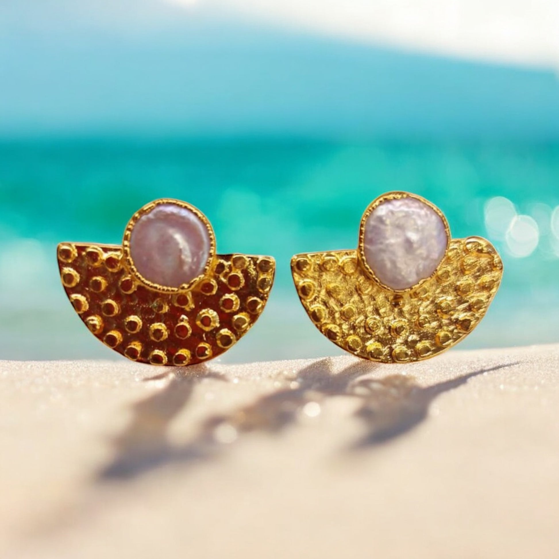 Sedef-Altın Kaplama Stud Tasarım Küpe